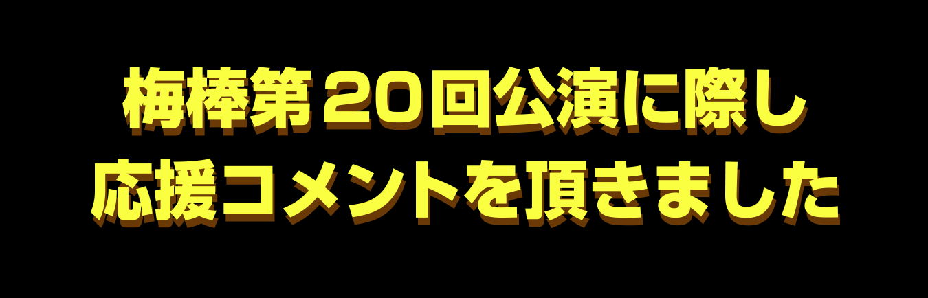 皆さまに支えられて迎える、記念すべき第20回公演・梅棒20th Breakdown『FINAL JACKET』開催に際して、梅棒を温かく見守って下さる方々から、応援コメントを頂きました!(敬称略)